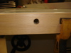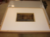 In Fig. 19, I've moved the melanine top to my Workmate and clamped some birch scrap around the area to be router for the plexiglass insert. This is where all the nasty mistakes show up. Despite my best efforts and patience, I forgot to tighten down one clamp and ended up having the router wander on one of the main cuts. (Fig. 20) Nuts. None of the others were perfect, but all in all, its still usable. (Fig. 21 - 23)